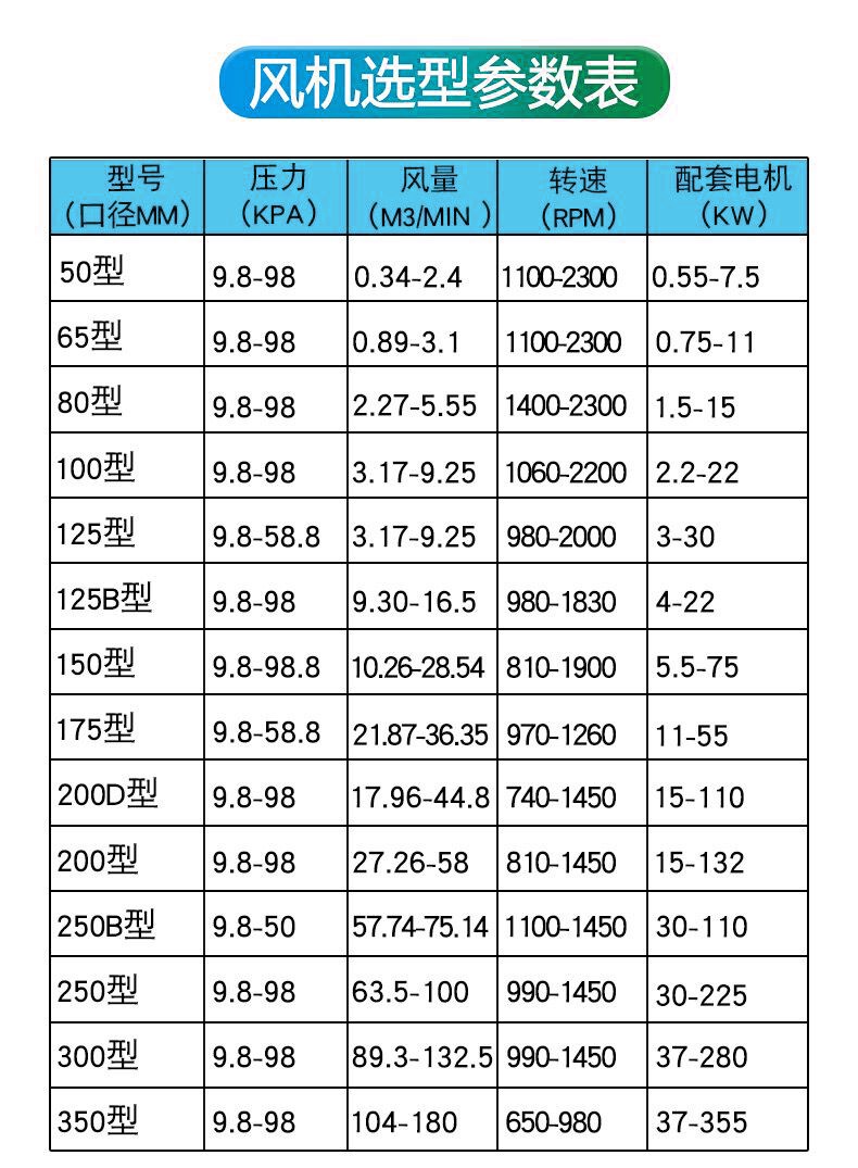 氧化風(fēng)機型號規(guī)格參數(shù)表